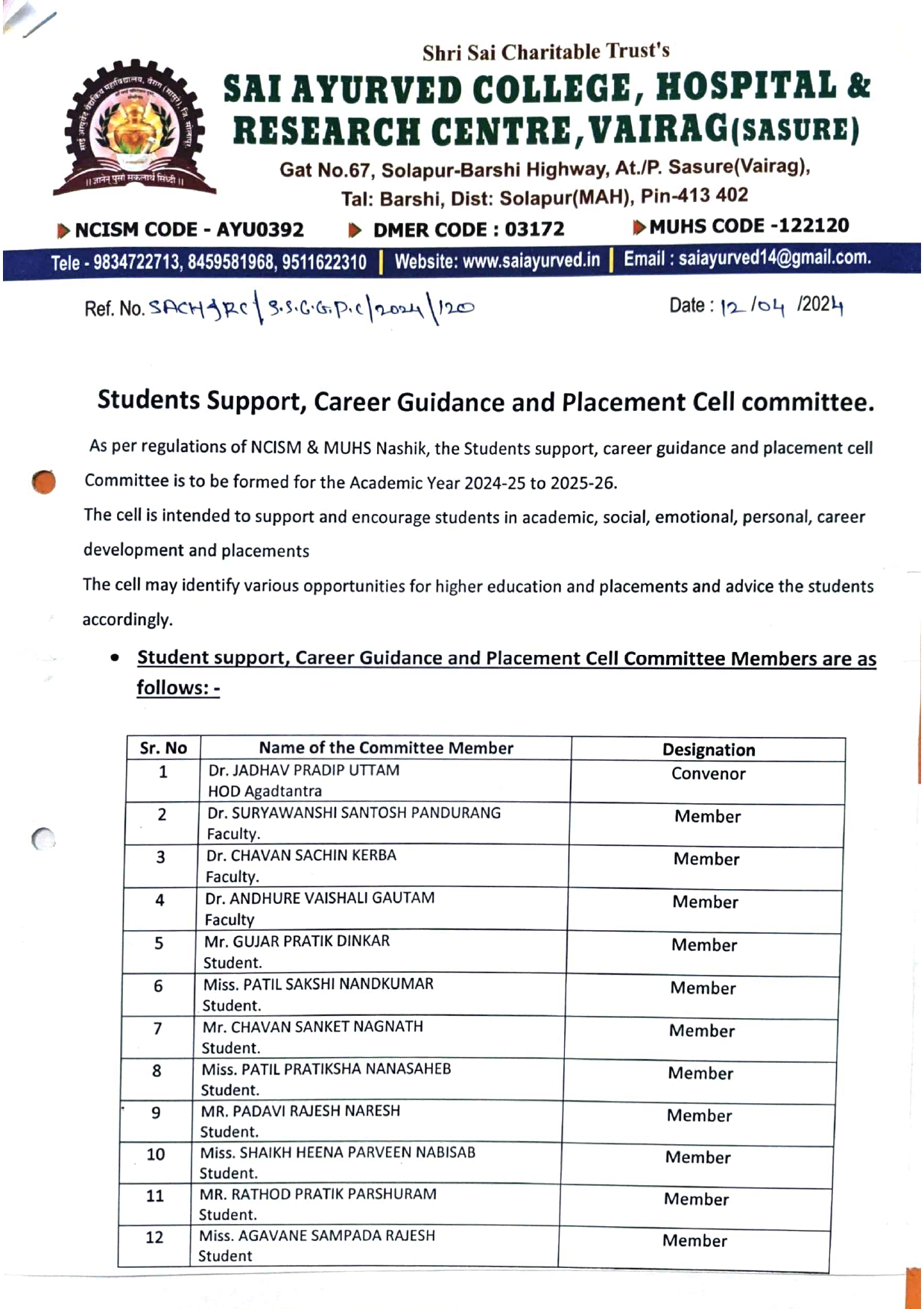 Accredited by NCISM-MARBISM & NABET- QCI Rating with 'B' Grade
