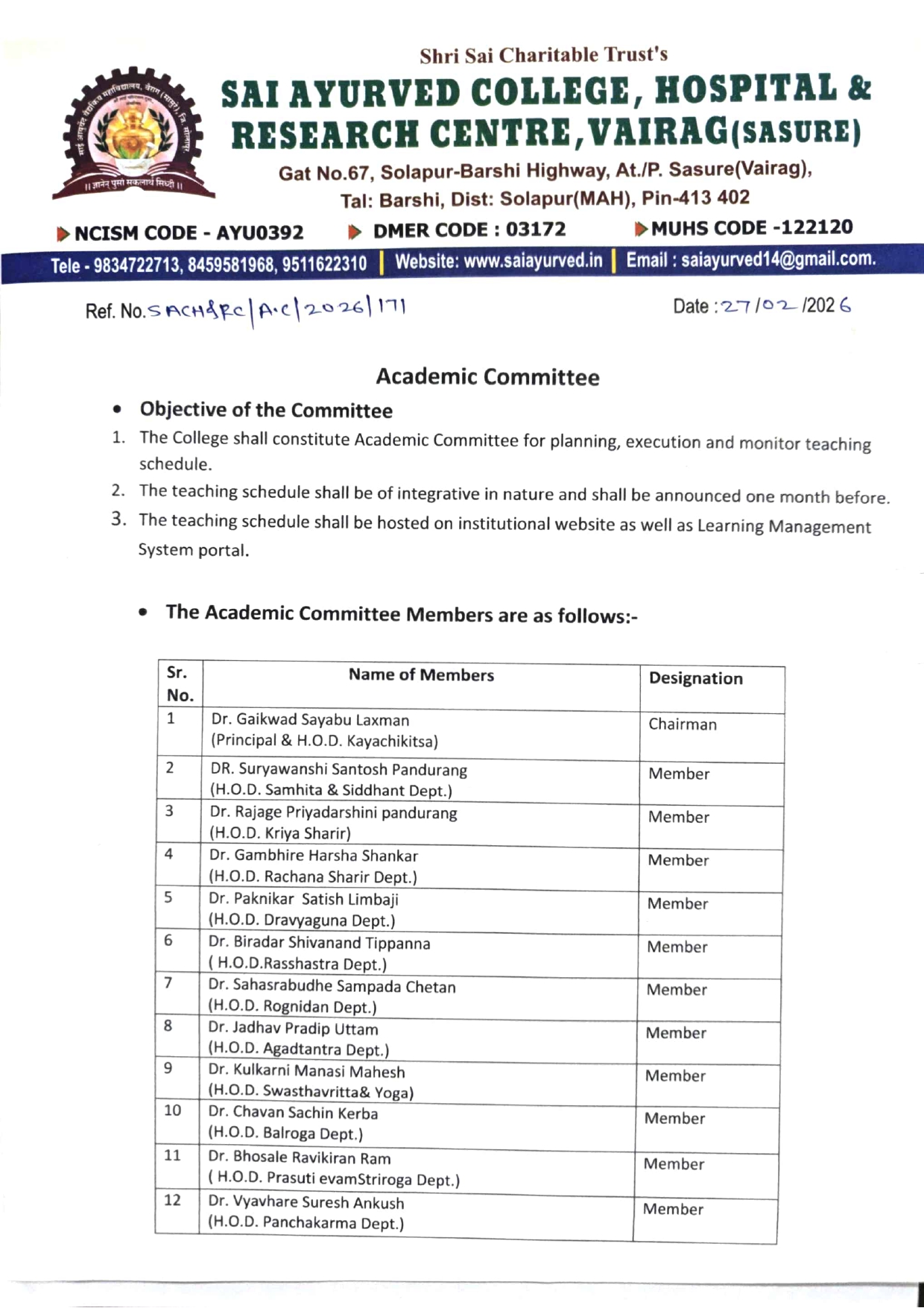 Accredited by NCISM-MARBISM & NABET- QCI Rating with 'B' Grade